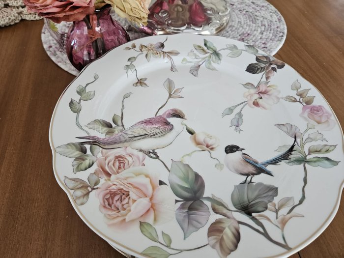 When I walked into my local HG, it was like stepping into Springtime overload: silk florals, pastel colors, and Easter-themed decor everywhere. I made my way over to the tableware section where I found one endcap that had the St. Patrick’s themed items, but alas none of the salad plates I was looking for. I did find several beautiful plates, though, and eventually chose four of these by Grace Teaware.