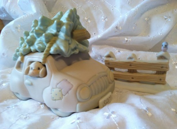 So I came home and looked it up on Ebay, and watched a few auctions. And while I was surfing Ebay, I came upon this little piece: a little car with a Christmas Tree tied to the top, and a worrisome little puppy anxiously looking out the car window.