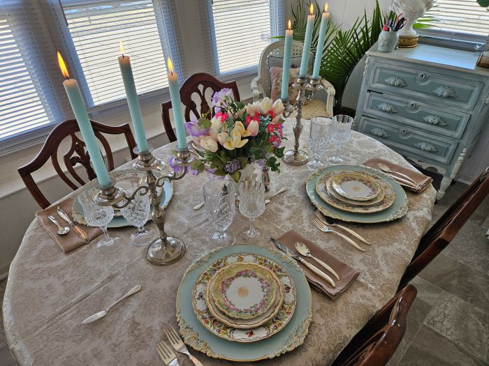 - My tables will be set with love and forethought. I’ll audition a variety of plate combinations, centerpiece elements, glassware, flatware, napkins, etc. – all in an effort to give the gift of a delightful table that enhances the dining experience. Because “playing with the dishes” is honestly half the fun!